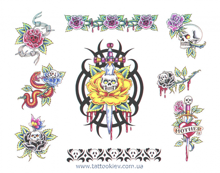 В даному каталозі представлені чорно-білі і кольорові ескізи тату в традиційному стилі Олскул і Ньюскул, а також ескізи інших стилів. Додайте наш каталог до себе в закладки (внизу сайту є кнопки соц.закладок), і ви в будь-який зручний для себе час зможете повернутися і вибрати відповідний ескіз для татуювання.